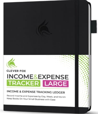 $19.99)- “Clever Fox Budget Planner – Your Go-To Tool for Smart Spending! Track expenses, plan monthly budgets, and stay organized with this sleek A5 finance logbook—helping you take control of every dollar.”
