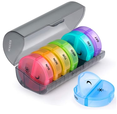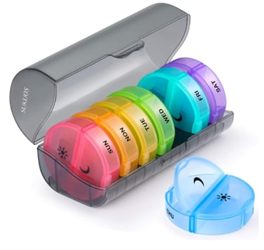 a simple, easy-open AM/PM pill case with double protection. Perfect for keeping your vitamins, meds, and supplements organized all week without hassle.