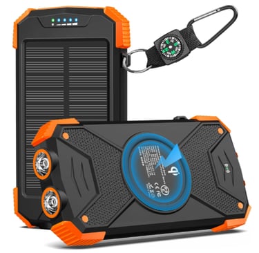 A reliable portable power bank designed for everyday use and emergencies alike. With 10,000mAh capacity, fast 20W charging, wireless charging support, and solar panel backup