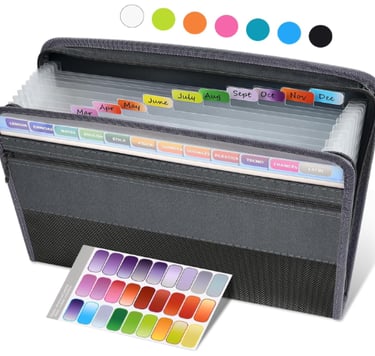 A simple expanding folder with 13 pockets to keep monthly bills, receipts, and documents sorted. Easy to carry, labeled sections, and plenty of space for tax paperwork or everyday record-keeping.